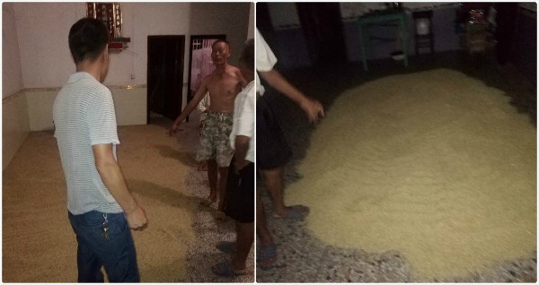 七月末,株洲茶陵基地搶收搶曬工作正式拉開了序幕,而我也在那時來到了基地(dì),加入了這場搶收(shōu)搶曬戰役,開始(shǐ)了忙碌的基地生活。每天重複中同樣的工作,守護種子安全。 清(qīng)晨6:00,“現在(zài)為(wéi)您播報茶陵縣7月24日天(tiān)氣預報,今(jīn)日天氣晴轉多雲,氣溫26-37攝氏度,地麵濕度23。”從(cóng)睜眼的這一刻開始,就開始時刻關注耳邊手機播報的天氣預報,按前幾天的天氣情況推測,我在心底歎了(le)一聲,這注定又是不平靜的一天。 8:30,天氣晴朗,製種基(jī)地中近(jìn)400畝種子正(zhèng)在等待收割。收割機進行仔細清(qīng)理之後下田開始工作,隨著機器的轟鳴聲,一排排沉甸甸的種子被迅速卷進收割機旋臂中,在機艙內進行脫粒之後又(yòu)源源不斷從後麵吹出稻(dào)梗和皮穀(gǔ)。在村莊的房前屋後各個曬坪,農戶們正將曬場清掃幹淨,在曬場(chǎng)的另一邊擺放著(zhe)一卷卷彩條布,這是為防備不良天氣所做的準備。 9:00,天氣晴朗(lǎng),農戶(hù)們看著從收割機穀倉中抽出來的種子慢慢堆滿(mǎn)三輪車,裂開的嘴角慢慢擴大到臉頰上。帶著這禁不住的笑容,熟練地啟動了車子往村莊的曬場趕去,在一家人的幫助(zhù)下,種子被迅速攤開。 11:30,火熱的(de)太陽高懸(xuán)天上(shàng),在農戶們的庭院中,種子的水(shuǐ)分隨(suí)著氣溫的升高快速的下降著。騎著車子緩慢行駛在村莊(zhuāng)的水泥路上,陳師傅坐(zuò)在後座上用著一口純熟的本地語言在和路旁正翻著種子的農戶們開著玩笑並(bìng)提醒著:“哎呀,今年產量好哦,要賺錢了哦,注意晚上不要堆了啊”。 15:30,天氣開始(shǐ)了變化,豔陽高照的天空中不知何時在南邊起了雲。15:40,不斷堆積的雲(yún)層慢慢變了顏色,從分散的白雲漸漸變成了相連的烏雲,緩緩朝北邊的天空壓過來(lái)。看見這變化,我趕緊叫起陳師傅說到:“陳師傅,看這天開始變(biàn)了,估計要不了多久就到我們這邊來了”。陳師(shī)傅趕忙出來查看,“走(zǒu),快去把車推出來,我們得去喊下他們”。我騎著車順著村莊的小路挨家挨戶提醒著,陳師傅在後座上扯著嗓子喊:“收穀咯收穀咯,要(yào)落(luò)雨咯,攤屋裏去,莫堆咯!”農(nóng)戶們尋聲而動,全家老少齊上陣,散戶們量少,不一會就收進(jìn)了屋子;大戶們正抓緊時間進行歸攏,一旁的彩條布已經解開,隨時就可以蓋上。 16:30,正當(dāng)大戶進行著掃(sǎo)尾(wěi)時,伴隨著雷聲的轟隆聲,豆大的雨點啪啪落了下來。“先蓋上!先蓋上!”陳師傅急忙指揮著眾人,快速將彩條布蓋上穀(gǔ)堆,用掃把、磚頭一一壓緊,不一會(huì)雨(yǔ)就慢慢(màn)下大。 17:30,隨著飄在空中的小雨漸漸消失無蹤,太陽慢慢露(lù)出臉來(lái)。眾人聚集(jí)到(dào)曬場開始忙活起來,有的揭開蓋在穀堆上(shàng)的彩條布,有的拿著掃把清(qīng)掃著積水,有的從屋子裏拿(ná)出舊布條、衣服吸著低窪處的積水。太陽重新露臉,使得曬場上(shàng)的地麵(miàn)漸(jiàn)漸(jiàn)幹燥(zào),大(dà)戶將穀堆邊上的濕穀子攤在(zài)幹燥地麵上,陳師傅(fù)和我一邊幫忙一邊不時(shí)提醒。 20:30,夜色(sè)已濃,新一輪(lún)工(gōng)作也(yě)在夜色中拉開序幕。我們在陳師傅家中簡單吃過晚飯,便開始挨(āi)家(jiā)挨戶檢(jiǎn)查堆漚。因為種子水分尚未達到安全水分,為防止堆漚,按公(gōng)司要求當(dāng)天所有收割的種子必須攤開。近兩(liǎng)年收割期間時常碰見陣雨,在公司駐點人員的嚴格要求與處(chù)理下,農戶們漸漸養成了防堆漚意識。在我們檢查之(zhī)前大部分(fèn)農戶(hù)已(yǐ)經將種子攤平在屋內,打開窗戶通風透氣。少部(bù)分農戶沒有及時攤(tān)開,我們一邊(biān)幫忙將穀堆攤開,一邊反複舉例向其澄清厲害。看(kàn)到我們如此(cǐ),農戶們紛紛豎起拇(mǔ)指,按照要求細細將種子攤開。 23:30,終於結束了(le)一天的工作,我躺在(zài)床上閉著眼(yǎn)睛回想(xiǎng)著今天天氣的變化,回顧這一天的工作,想著一位位農戶放鬆下(xià)來的笑臉,心想:及(jí)時為他們(men)提供信息(xī)和幫助不就是我(wǒ)駐守基地的最大意義麽(me)。明天我得更加用心,盡一切可能,盡自己最大努力,確保基地種子(zǐ)順利收曬完畢,直到這場搶收搶曬戰役結束。