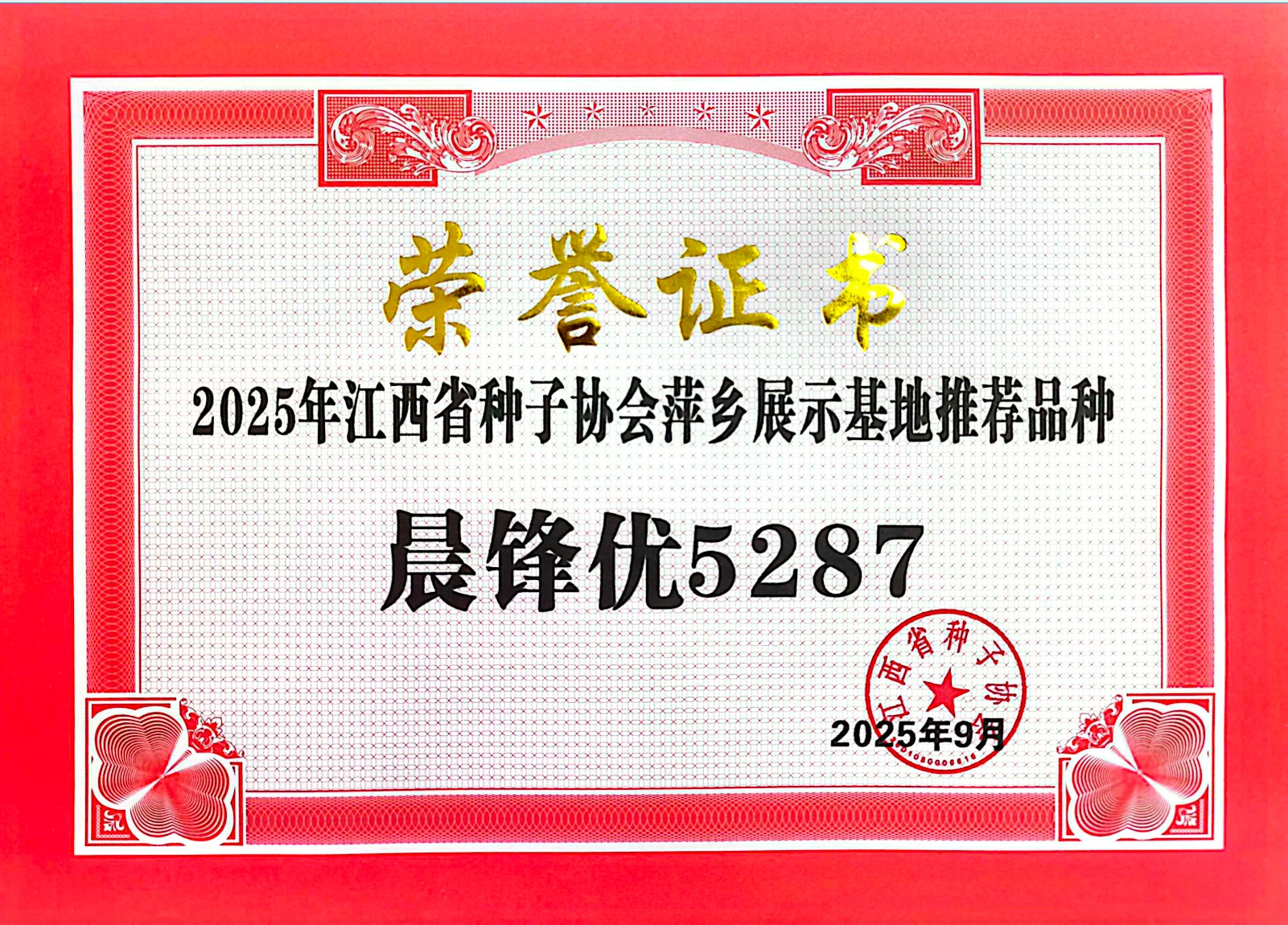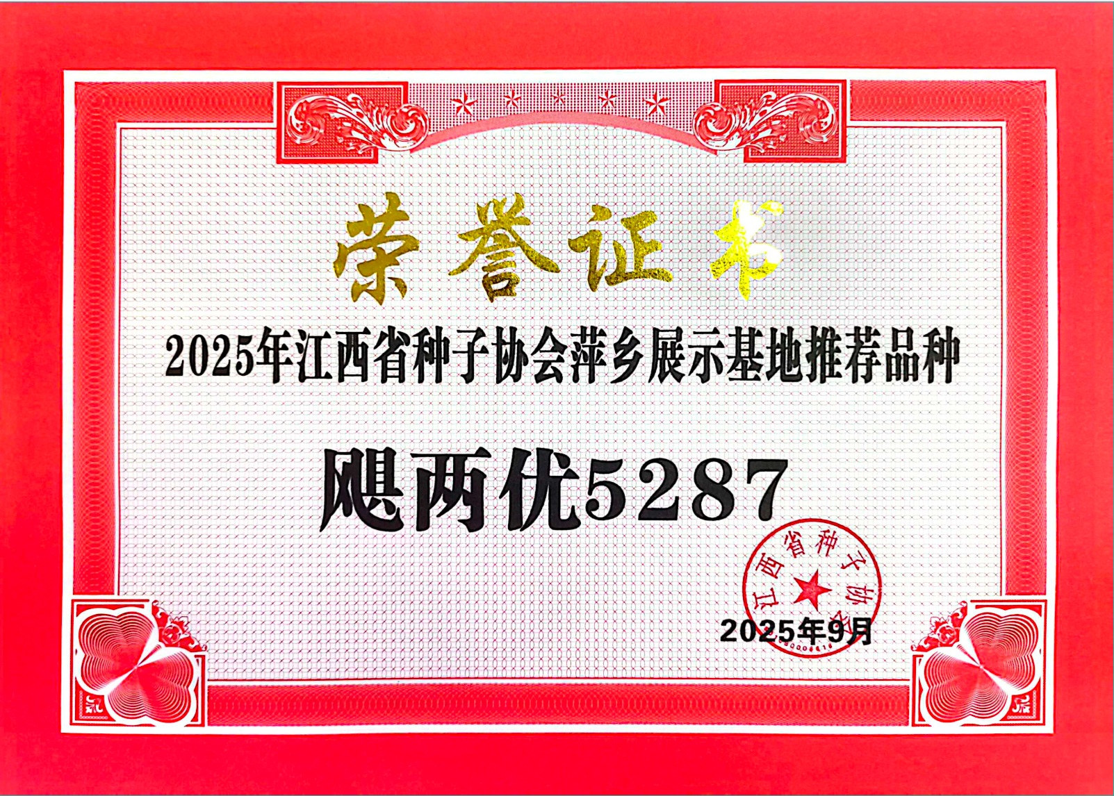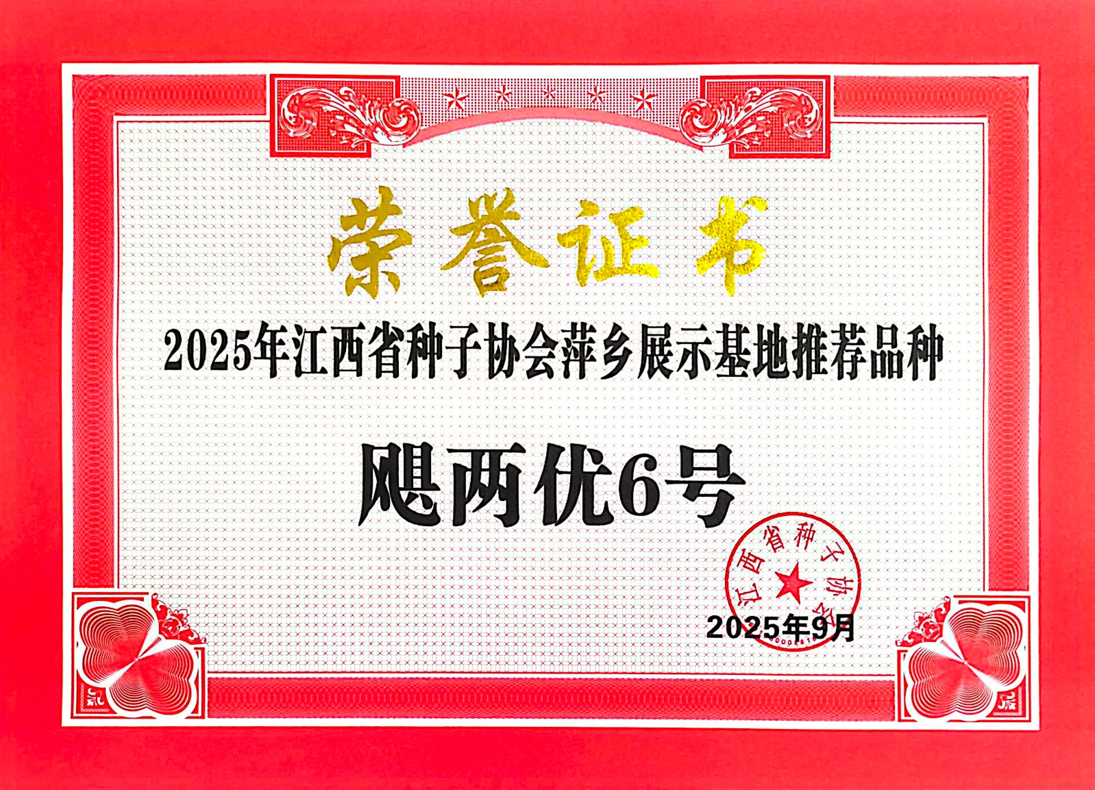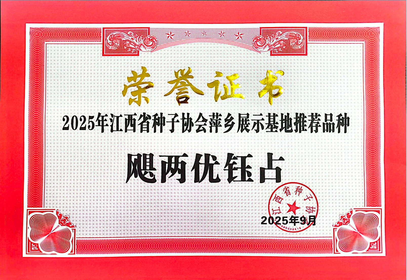 公司品種榮獲2025 年江西省種子協會萍鄉展示基地推薦品種