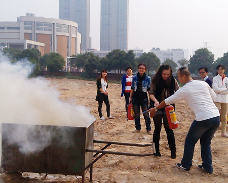 此次培訓分兩個環節:第一個環節由公司消防專員王誌明講解(jiě)消防基礎知識,內(nèi)容包括消(xiāo)防基本法律法規、怎樣排查消(xiāo)除隱患、如何撲救初(chū)起火災、如何組織疏(shū)散(sàn)逃生、各類消防器材的使用方法及原理(lǐ),在(zài)講解過程中還結合了許多發生在身邊的事故案例,使大家真正感受到(dào)了火災的危害及(jí)消防(fáng)安全的重要性(xìng);培訓第二個環節是實(shí)際滅火演習,消防專員(yuán)結合(hé)實物講解(jiě)並示(shì)範了室內消火栓和滅火器的使用方法。在認真(zhēn)觀看後,各位同事(shì)親自體驗了現場滅火的過(guò)程,麵對熊熊燃燒的火堆(duī),大家表現得十分(fèn)勇(yǒng)敢,按照滅火的步驟將(jiāng)濃煙大(dà)火迅速撲滅(miè),有(yǒu)的同事覺得一遍不過癮(yǐn),還(hái)操作了了好(hǎo)幾次。