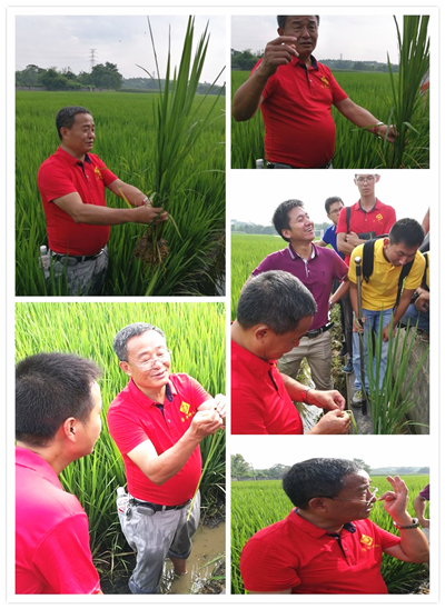 在田間,參訓人員抓住(zhù)這次難得的機會,請(qǐng)教自己在工作中(zhōng)遇到的技術問題,如如何(hé)區分雜草稻,如何預估水稻破口期及時打(dǎ)藥,如何快速區分自己公司品種和其他公司品(pǐn)種等(děng),廖(liào)老師頂著烈日,耐心細致(zhì)地為大家答疑解惑。為了更好(hǎo)地解答大家的疑惑,廖老師還結合前期華南的各地實際情況,有針(zhēn)對(duì)性地為大家講解(jiě)了防治矮縮(suō)病以及怎樣幫助農戶增產增收等關鍵知識。在田間2個半小時的學習(xí)讓大家受益匪淺,滿載而歸。