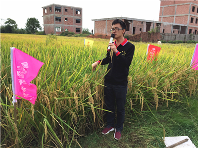 到達徽兩優2000和隆兩優987示範田塊後,大(dà)家看到,跟周邊其他田塊大麵積倒伏的情景相比,這兩個品種挺拔的身姿,金黃的稻穗,翠綠的葉片,迎風擺動,就連田邊品種展示牌都被風吹倒,但這兩個品種依然屹立著,“臨風不慌”,顯得格外的引人注目。