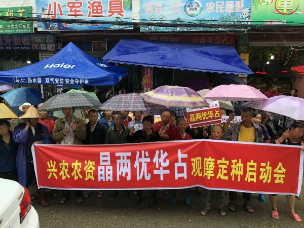 在前期努力下,中江通過晶兩優華占高產示範(fàn)技(jì)術(shù)田間培訓會打造了一批高度認可品種,願意宣傳,願(yuàn)意配合工作,自身擁有一定麵積,有一定(dìng)種植技術的(de)晶華占種植戶。為了持續造成影響,更深入地了解品(pǐn)種,傳播(bō)技術,帶(dài)動更多的人參與品種推廣宣傳,一場熱鬧的觀摩預定會議(yì)暨(jì)晶兩優(yōu)華占分蘖大賽在(zài)中江正式啟動,打(dǎ)響了(le)農戶定種第一槍(qiāng)。 天剛亮,盡管下著雨,但絲毫沒有阻擋農戶們的熱情(qíng),來自各村組的(de)廣大的農戶們紛紛提著秧苗前(qián)來參加比賽,場麵很是壯觀。 “78根”、“86根”、“89根”、“90根”、“95根”.....在現場農戶們一聲(shēng)高過一聲的驚呼中,經過現(xiàn)場激烈的比拚,最終決勝出了晶兩優華占單株分蘖王。此次前來(lái)參選的秧苗(miáo)平均分蘖(niè)均達到50根以(yǐ)上,而獲得特等獎的單(dān)株分蘖王更(gèng)是高達95根,晶兩優華占強大的(de)分蘖能力讓現場農戶欣喜(xǐ)不已,獲獎的農戶更是笑開了花。 分蘖大賽是觀摩預定的開始,打響了(le)農戶定種的第一槍,相信隨著我們後續活動的開展,未來定(dìng)能讓晶兩優華占走進更多農(nóng)戶的家,造福更多人。