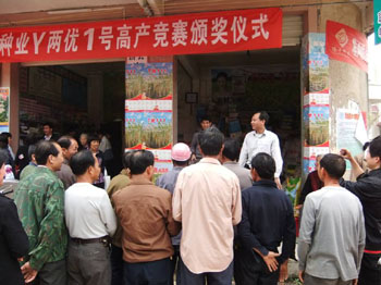 鞭炮轟鳴,喜慶熱鬧。連日來,在欽州、玉林、河池等(děng)廣西各地市,Y兩優1號(hào)高產栽培競賽的鼓勵獎、三等獎、二等獎、一等獎各歸其主,轟(hōng)鳴的鞭炮聲將各地頒獎儀式的熱烈氣氛推向了高潮。