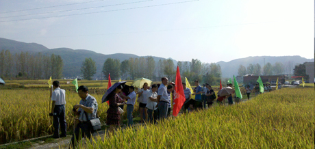 上午大家參觀了(le)T優618的大田示範。T優618均表(biǎo)現為大穗、高產、長勢整齊及落色好、易脫粒等良好特點。之後(hòu),還對多個田塊進行了(le)測產實收,其中產(chǎn)量最高的可達750公斤/畝(mǔ)。參會人員(yuán)對T優618的優良表現非常(cháng)滿(mǎn)意並給出了較高評價,參會(huì)過程中,很多人對自己手中的稻穗愛不(bú)釋手,為的就是要帶回去好做下一年銷售T優618時的樣本,相信老百姓看(kàn)到實實在在的東西,不會(huì)不相信(xìn)它的(de)豐產性的。緊接著,觀摩人員又參加了室內培訓會,公司廣西分公司姚總在會上(shàng)分別對公司的概況、目(mù)前種業的(de)行情和雲貴市場上我公司(sī)品種的運作特點以及老品種如何保鮮等方麵做了通俗易懂的精彩(cǎi)講解。同時,還特別對我公司後續強勁品種(主要是暫未在貴州審定的品種)跟大家作了交流,著(zhe)重強調樂營銷觀念(niàn)的重要性(xìng)。最後姚總繼續對雲貴市場下年度運(yùn)行的相關情況(主要是代理商分級(jí)申請、代扣款委托書的填寫等相關(guān)問題)向大家做了詳細說明。