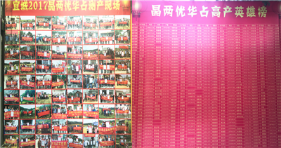 大會未始,門口的(de)測產牆與高產榜就吸引了眾多農戶駐足(zú)觀(guān)看。測產(chǎn)照片數量繁(fán)多,密密麻麻掛滿了牆。會場人聲鼎沸,到會(huì)的農戶熱烈地討論著晶兩優華占的優質性與豐(fēng)產性(xìng)。